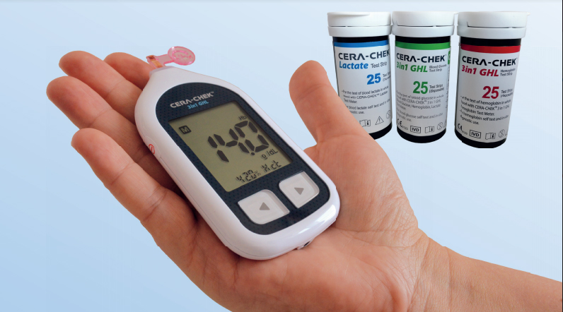 CERA-CHEKTM 3-in-1 GHL - аналізатор для визначення глюкози, гемоглобіну та лактату. Компактний прилад, який дозволяє за короткий час встановити цей параметр. Глюкометр повинен мати кожен діабетик. Причини обов'язкового наявності глюкометра можна сформулювати такі: