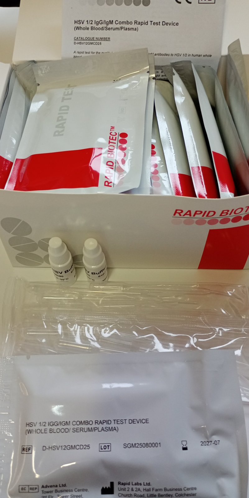 Комбінований швидкий тест HSV 1/2 IgG/IgM Rapid Test Device — це якісний латеральний імунохроматографічний аналіз для виявлення антитіл IgG та IgM до HSV 1/2 у цільній крові, сироватці або плазмі.
